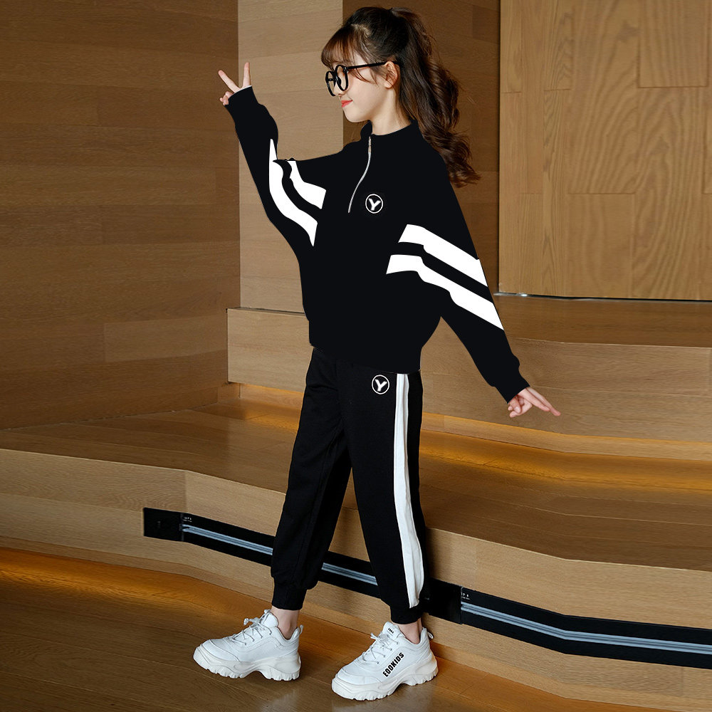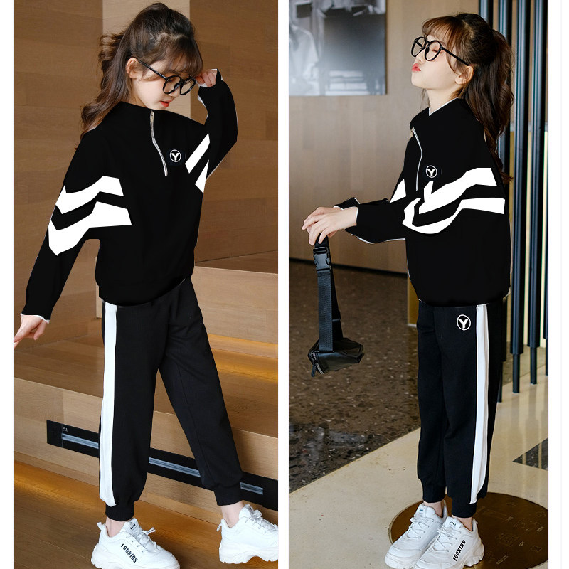Girl Sports Suit 2022 New Autumn Clothing Children's Trendy Foreign Pie Casual Big Child Suit Sportswear