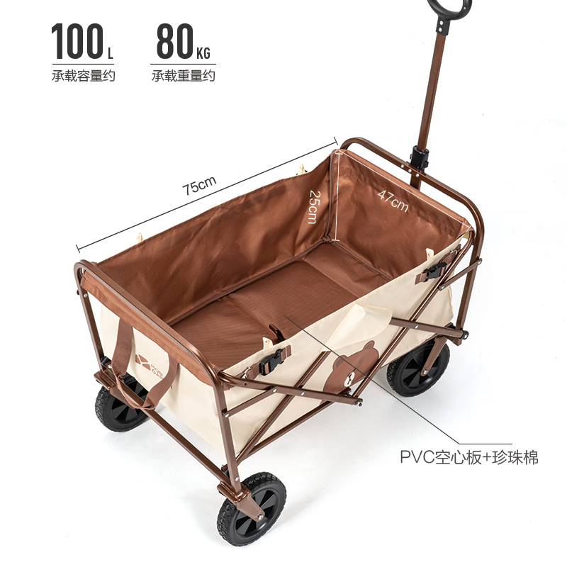 Line Friends, a Vibrant Brown Bear outdoor large capacity portable folding camp cart