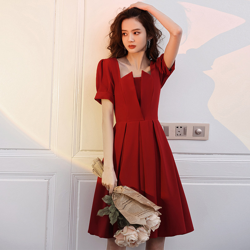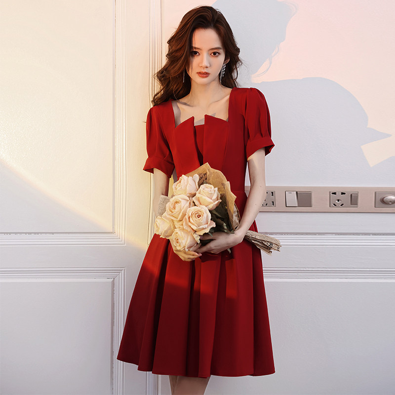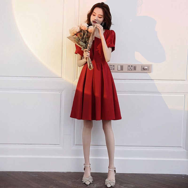 Red toast dress brides can usually wear wedding dress skirts short small men 2021 new female engagement winter