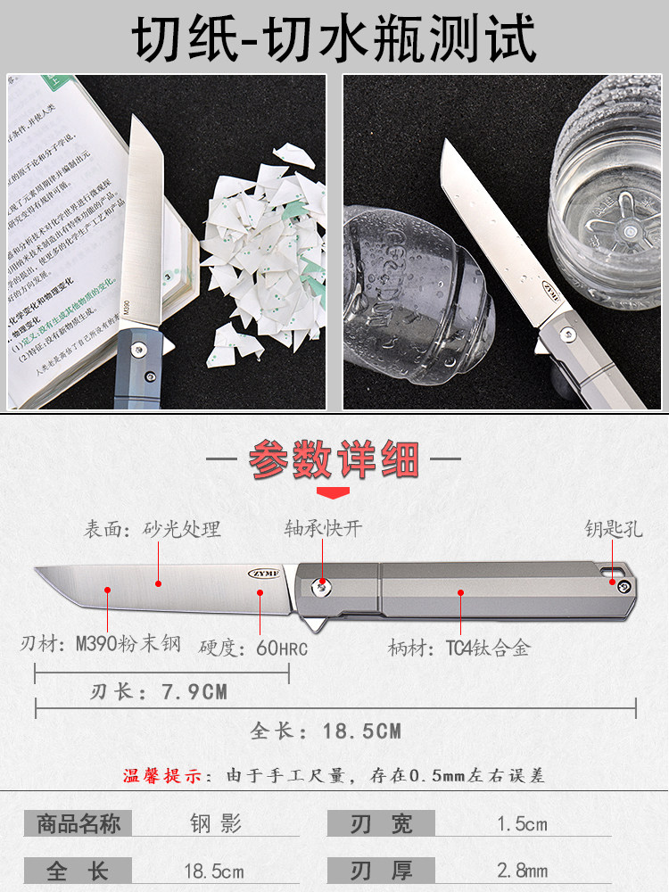 Taiwa Steel Shadow M390 powder steel folding knife portable outdoor knife self-defense folding knife bearing titanium alloy small knife