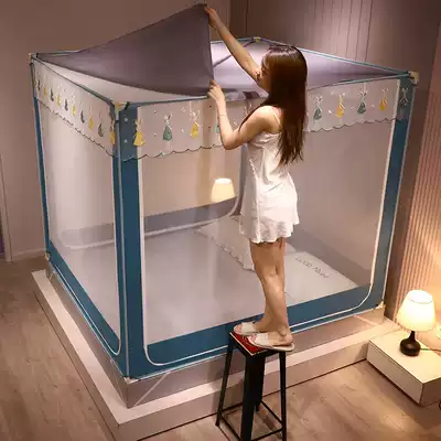 Dust-proof top mosquito net household bracket fixed children's anti-fall 1 8m 1 5m Yurt free installation thickening encryption