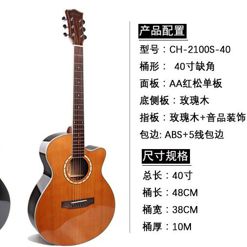 Qianxun brand CH-2100S-40 inch red cedar walnut surface single folk acoustic guitar men and women playing musical instruments