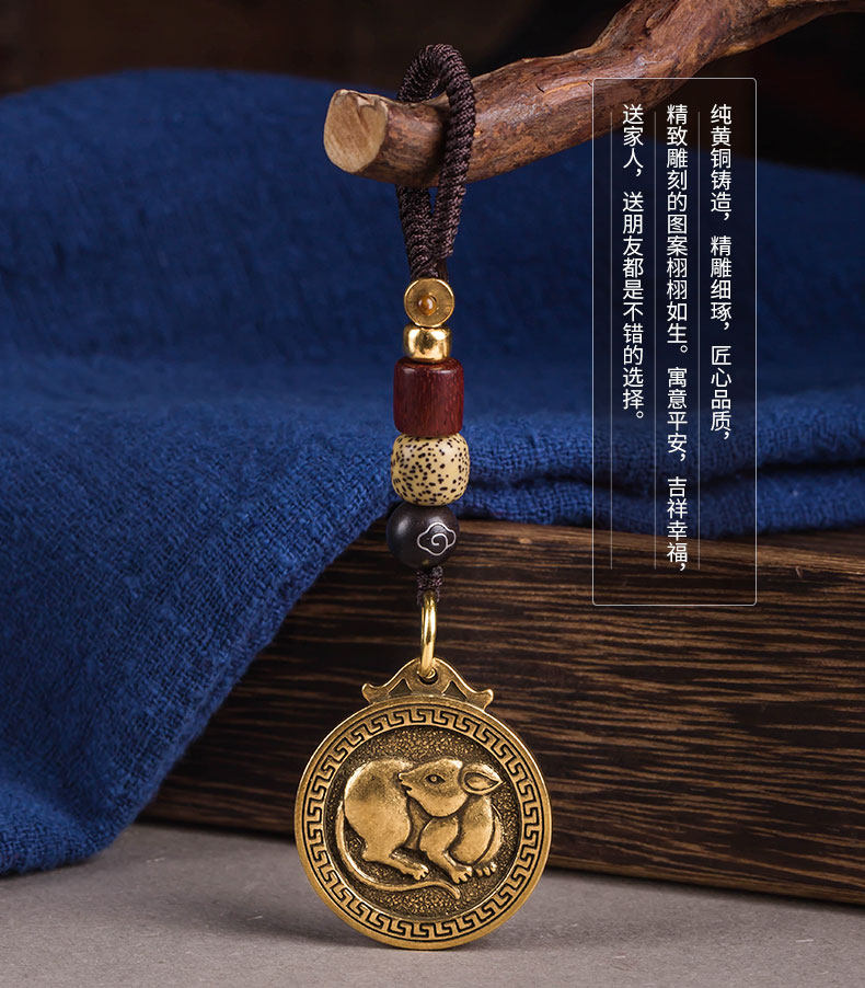 Retro Style Handmade Brass Trick of the Chinese zodiac foodie bronze Key buckle Pendant belongs to the hanging pendant pendant