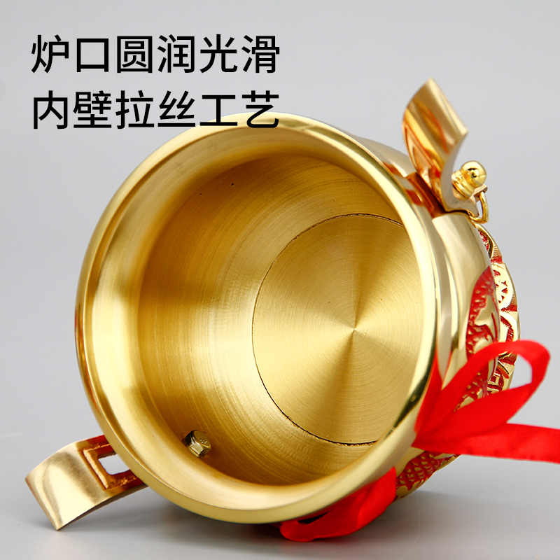 Pure Copper Binaural Strokes of the Treasure Fortune with the Lotus Aroma Furnace Home for the Buddha Guanyin Double Ear Aroma Furnace Pendulum