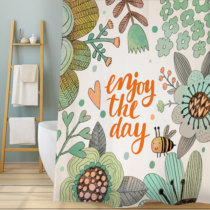 Cartoon Flowers Bathroom Burqa Thick Waterproof and Mildew Bath Curtain Cloth Makeup Room Shower Curtain Bathroom Blinds Bath partitions