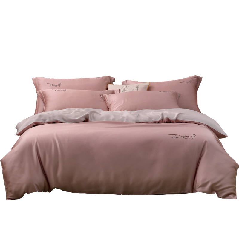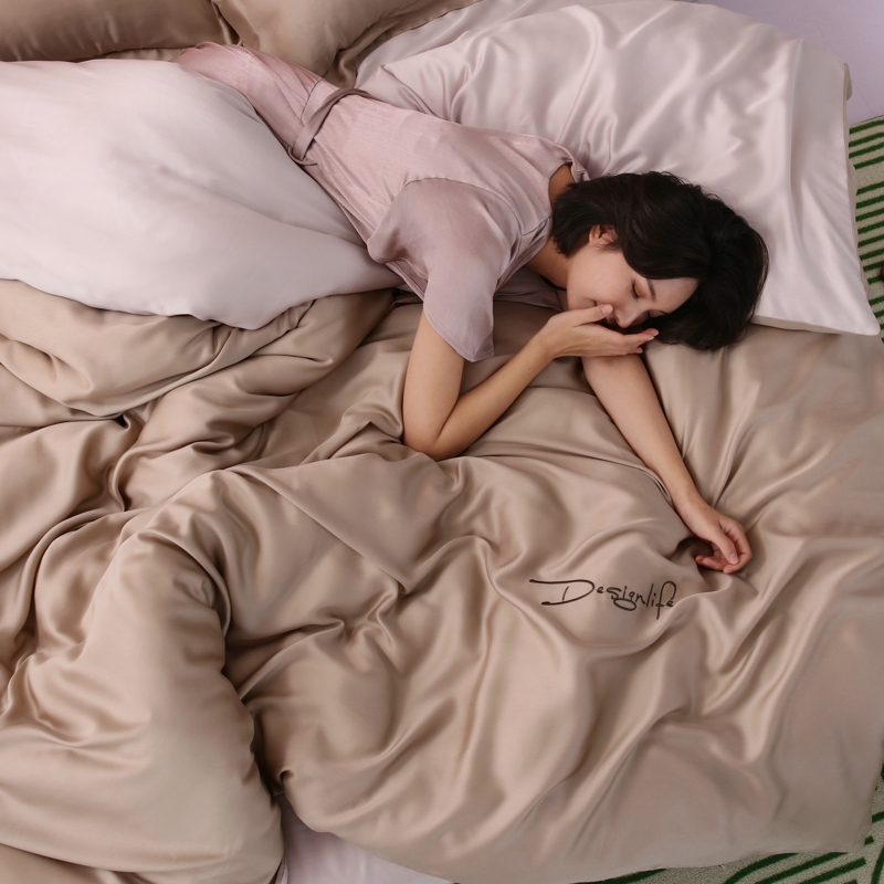 Summer Ice Sensation Sky Silk Four Pieces Quilt Cover Bed Monofilament Slip-On Satin Brief Bifacial Pure Color Ice Silk Bed Bedding