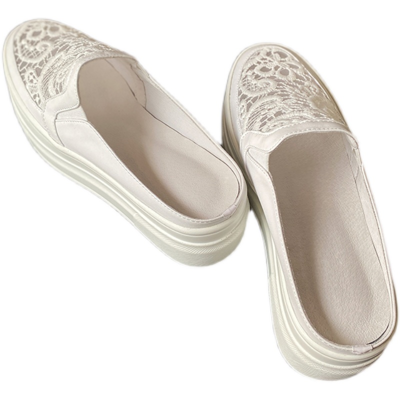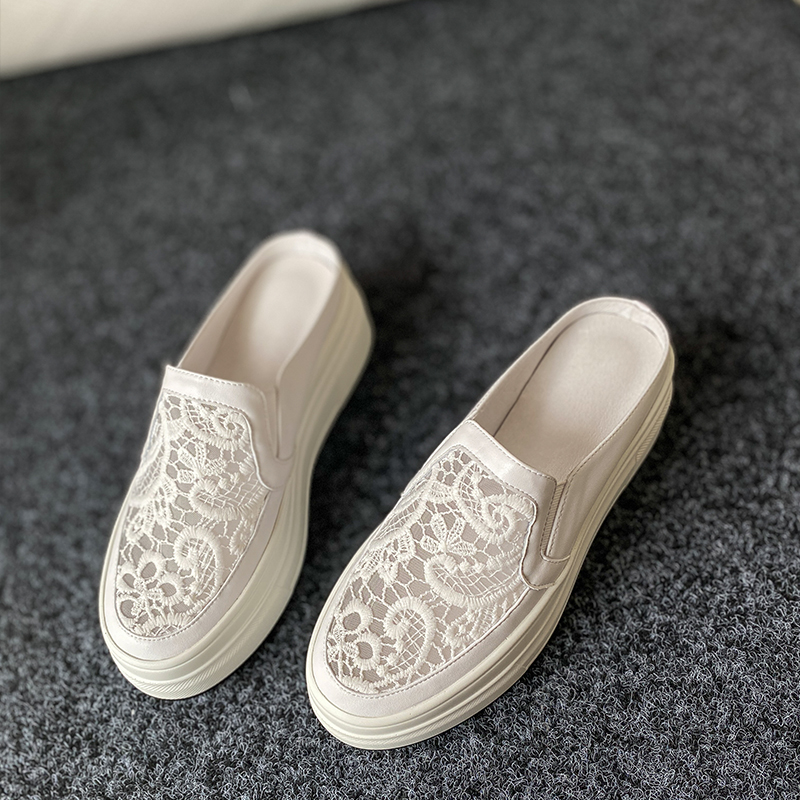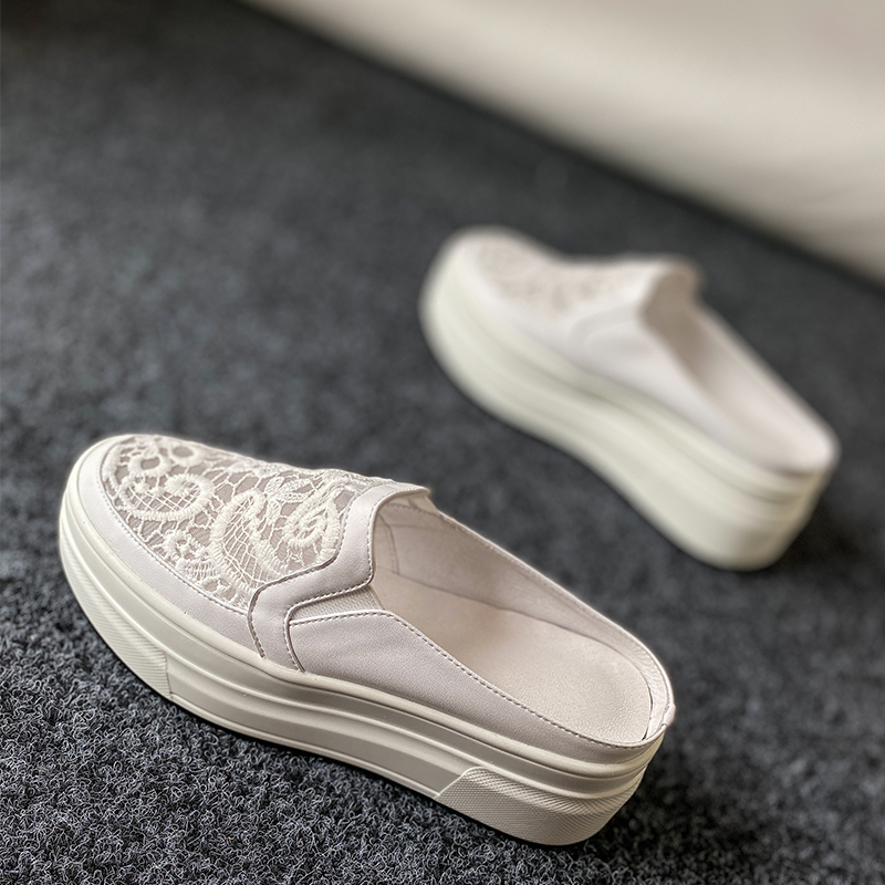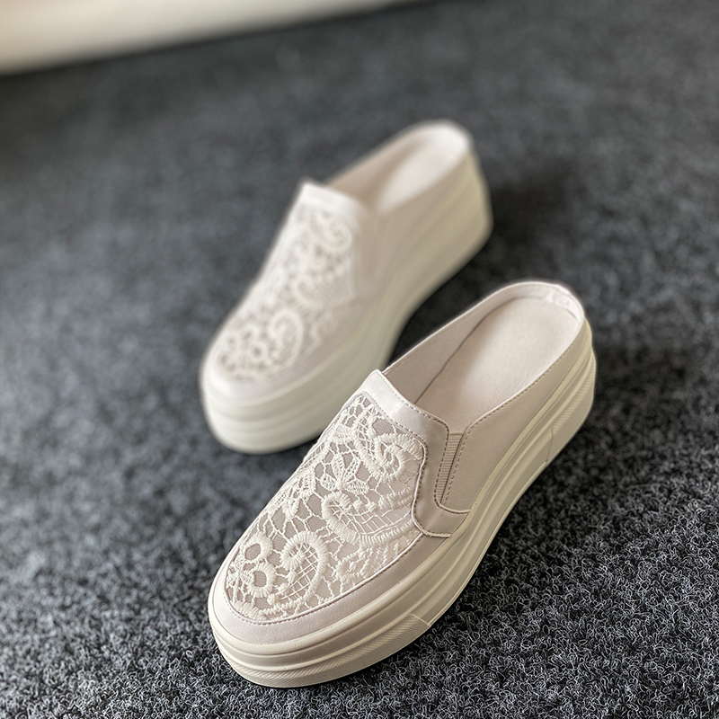 Thick soles slippers lace mesh breathless heel small white shoes semi-slippers leisure lazy drag lady summer
