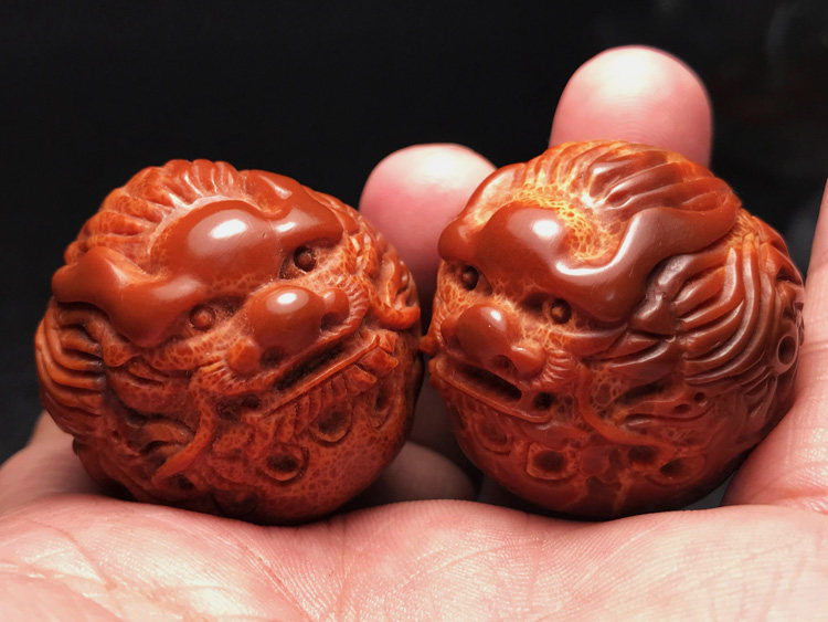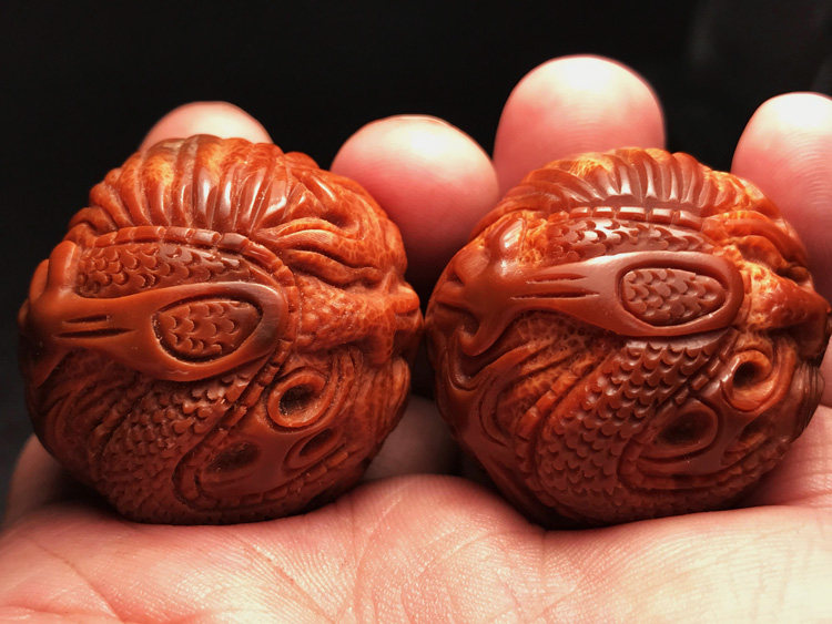 Shuanglong play pearl dragon ball imported large seed olive core carving text play health care body ball handball men and women play gifts