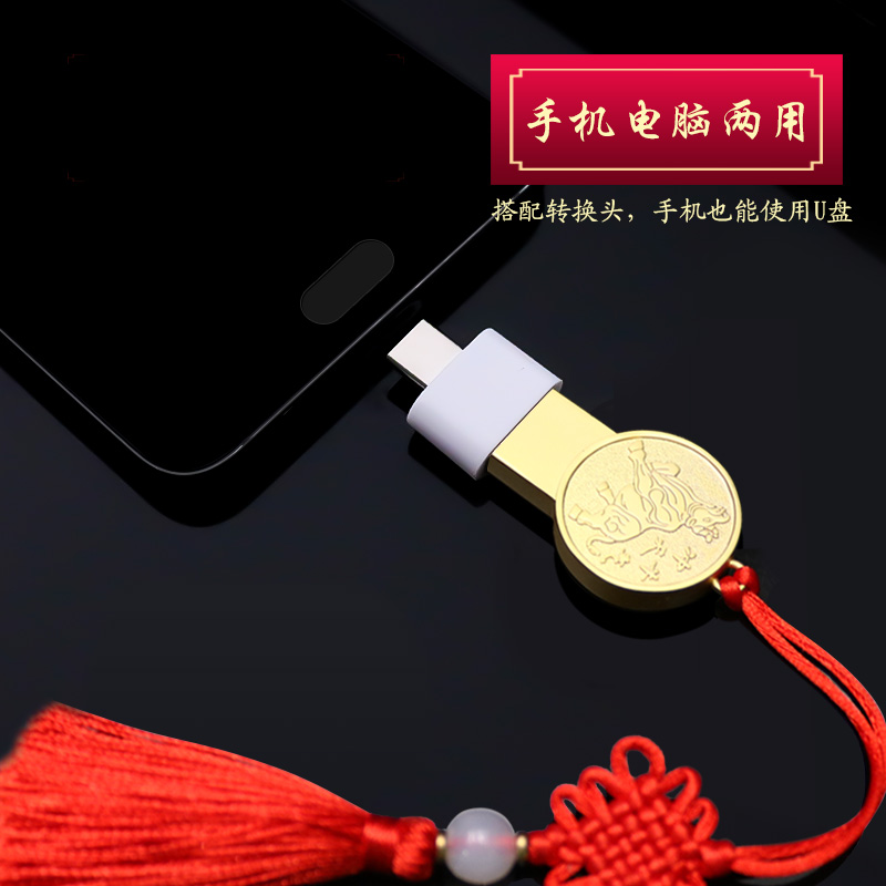 USB flash drive 32g ox zodiac usb personalized custom gift USB flash drive commemorative edition dual-head Android phone computer dual-use high-speed mobile storage metal mini cute business creative gift box flash drive