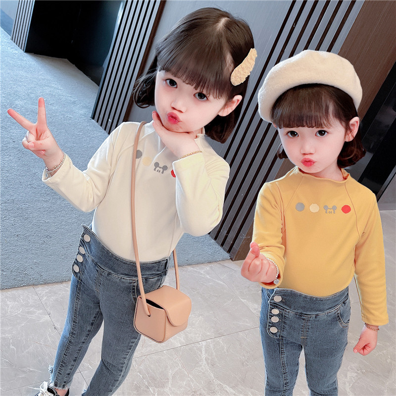 Girl gush with undershirt autumn and winter 2021 new children's winter clothing blouses the baby thickened with a velvety coat