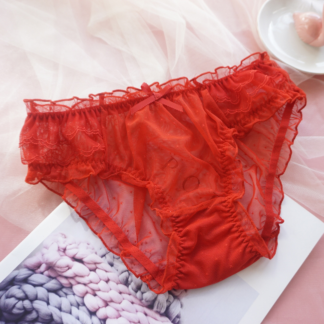 Big red bridal red panties sweet and cute Japanese briefs lace edge perspective low waist young ladies shorts