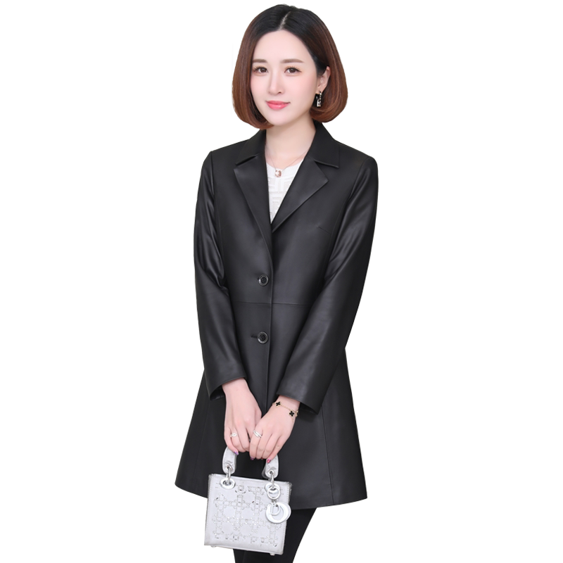 2022 new body leather windsuit woman with long version suit collar sheep fur coat large size Henning leather coat jacket