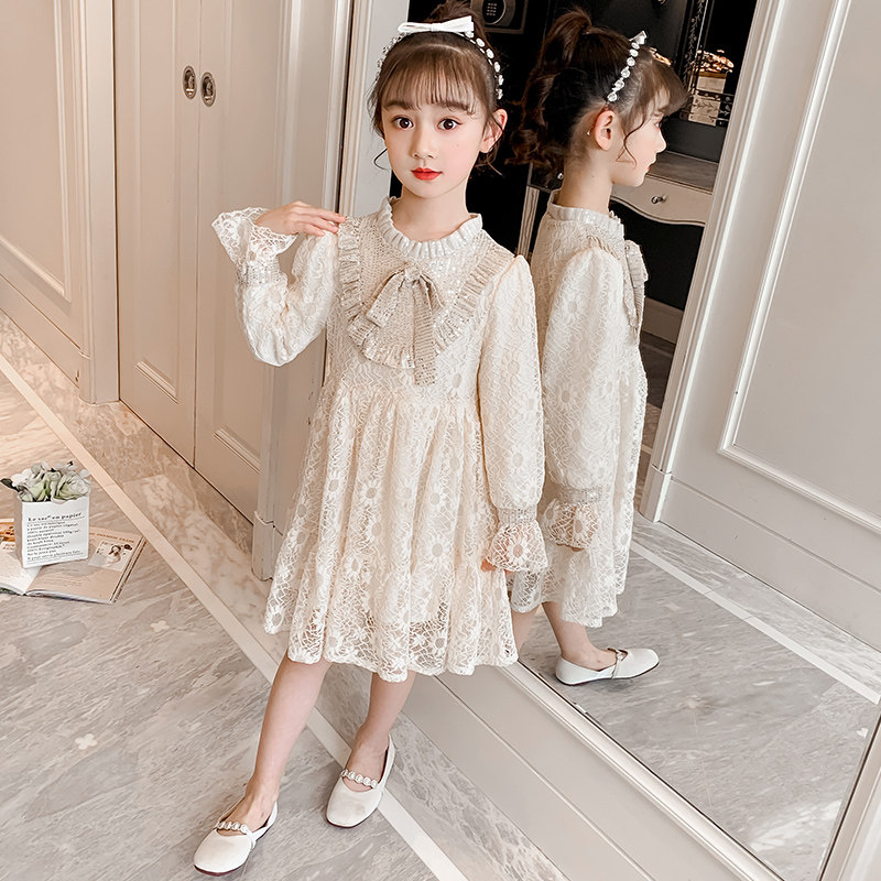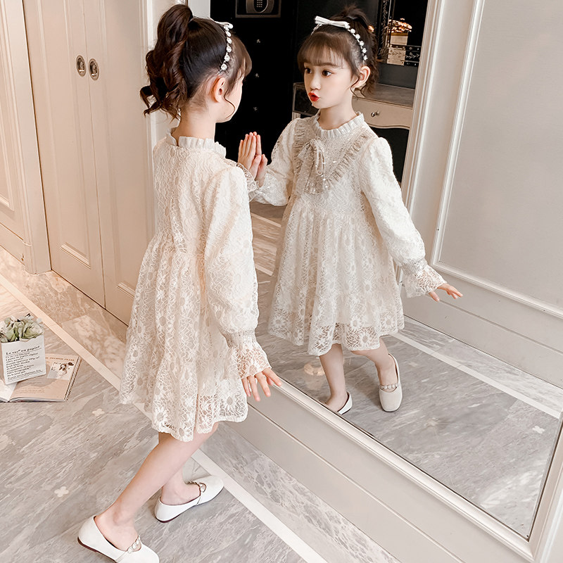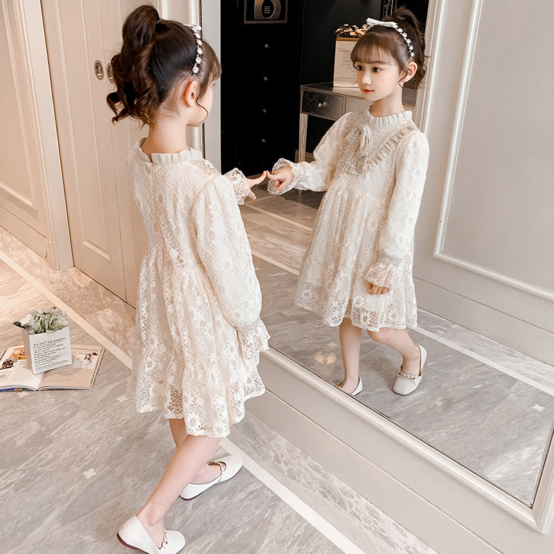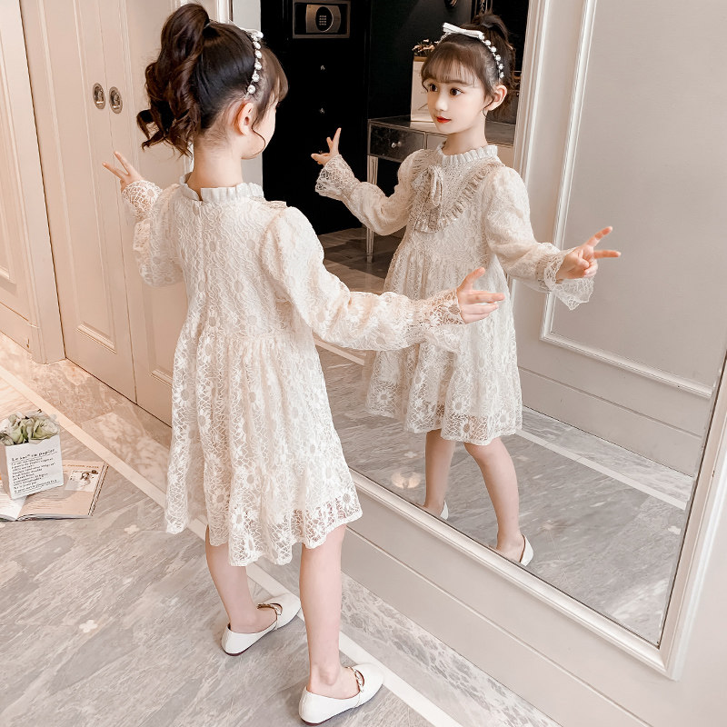 Girl Foreign Dress Autumn Dress 2022 New Foreign Pie Net Red Girl Child Clothing Lace Princess Dress Spring Autumn Season Dress