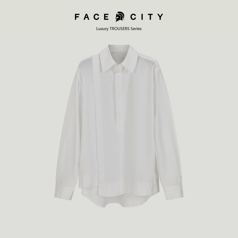 FACECITY 2021 New products Spring Festival Premium Shirt Men's white loose Fashion Korean version Long sleeves Shirt Men