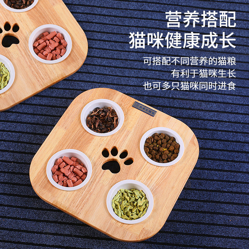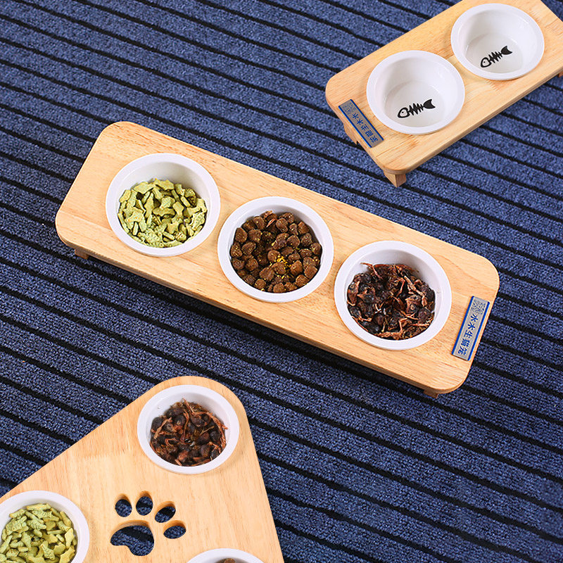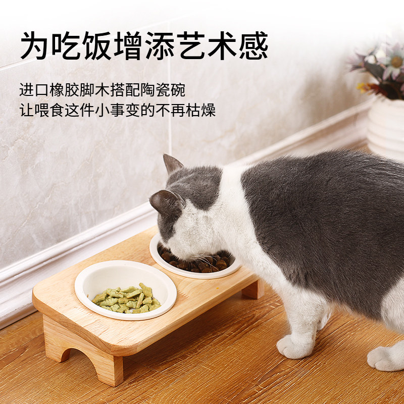 Cat Bowl ceramic protection cervical spine Anti-catfish Cat Food Bowl Cat Basin Cat Food Basin Water Bowl double bowl Cat Bowl Rack Solid Wood