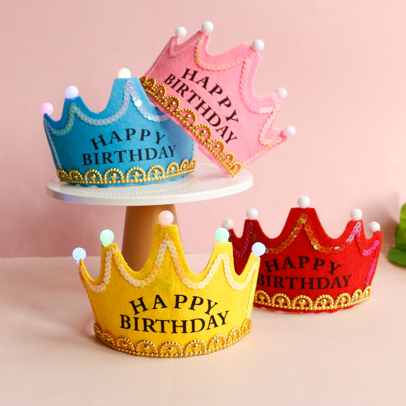 Birthday hat cake cap crown hat glowing cap red children's adult glowing hoop little baby goddess 30