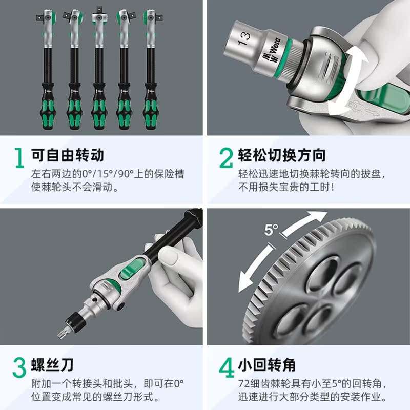 German Import Wera Vera Repair 80008004 Dial Lever Quick Ratchet Sleeve Wrench Petrol Repair 1 4-inch sleeve wrench
