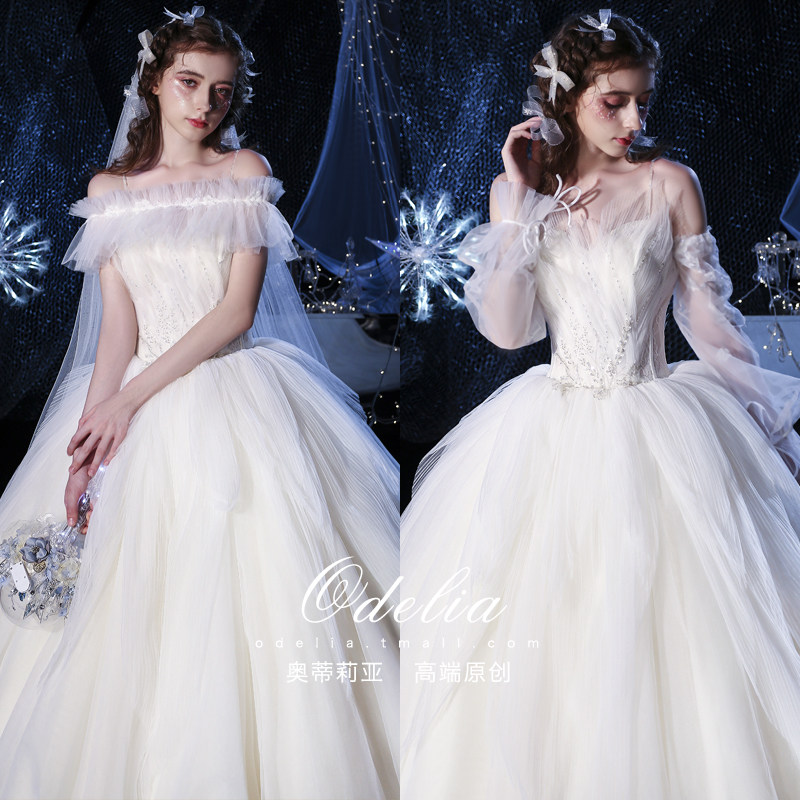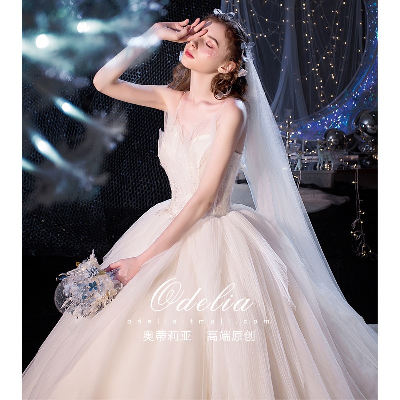 odelia "Swan" net Red simple wedding dress 2021 New main wedding dress big tailed bride out yarn