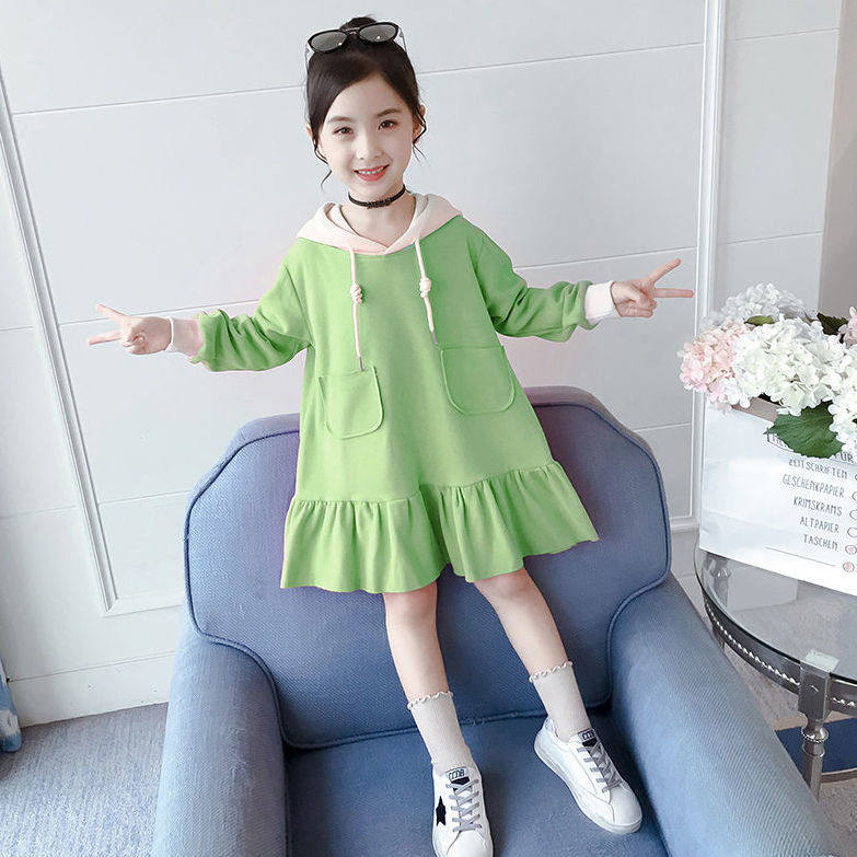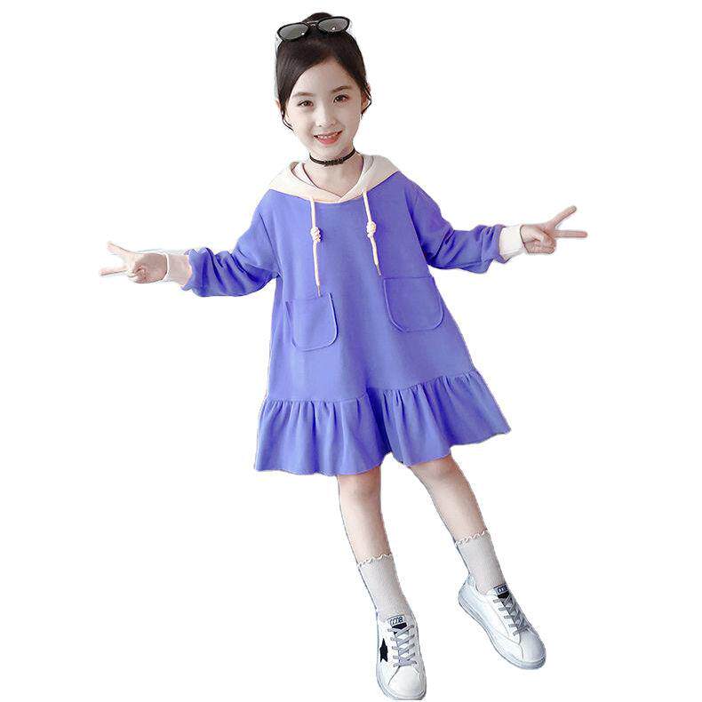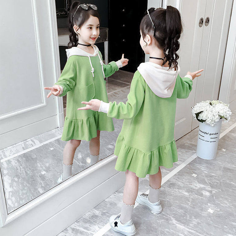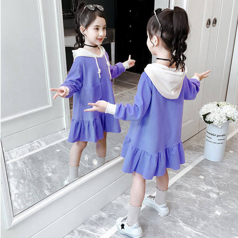 Girls autumn dress 2022 new western style girl children's clothing long-sleeved hooded fashionable princess skirt children's skirt