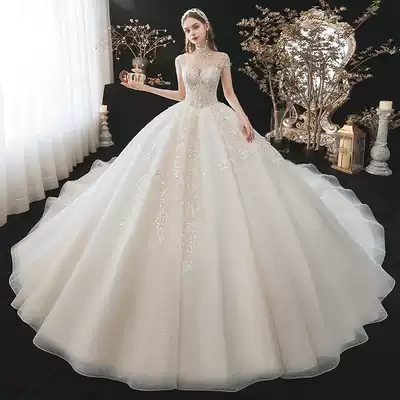 Main wedding dress 2021 New Bride pregnant woman shoulder French gauze winter large size high end atmosphere tailing luxury