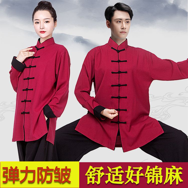 New winter tai chi clothes women cotton linen Chinese wind flax spring autumn martial arts practice Taijiquan Costume Men's Competition
