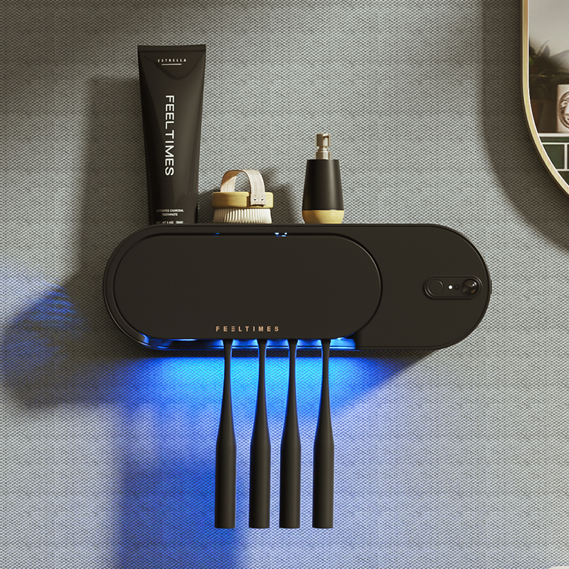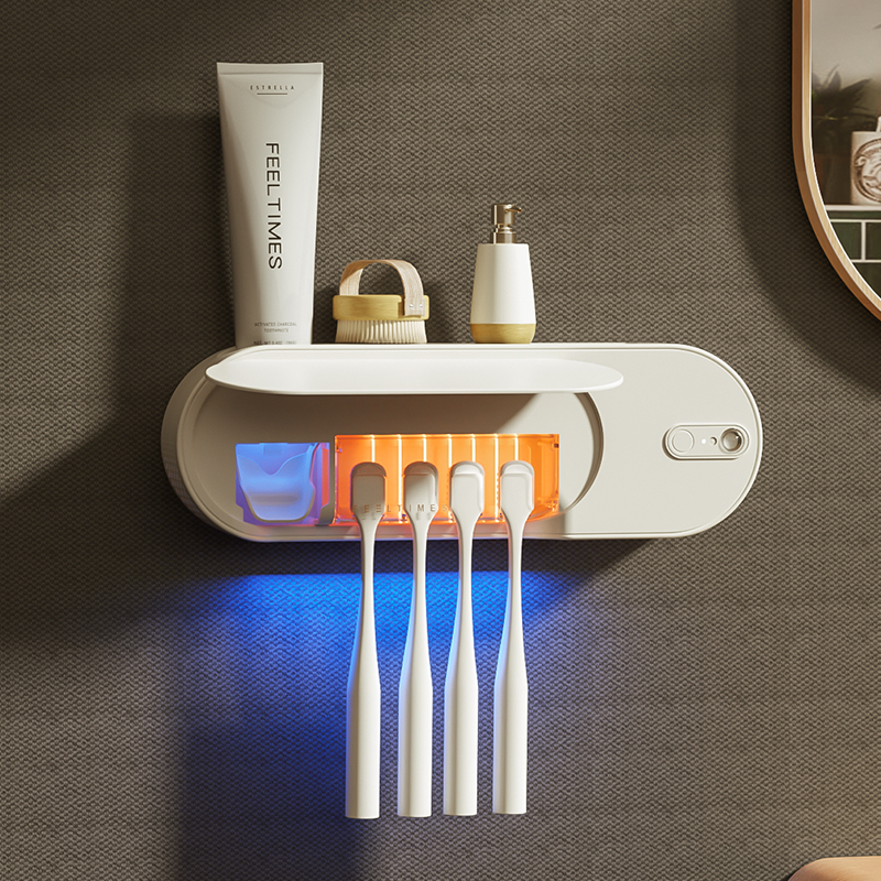 Intelligent sterilization toothbrush frame drying disinfector automatic ultraviolet wall hanging free punching makeup room toothbrush frame
