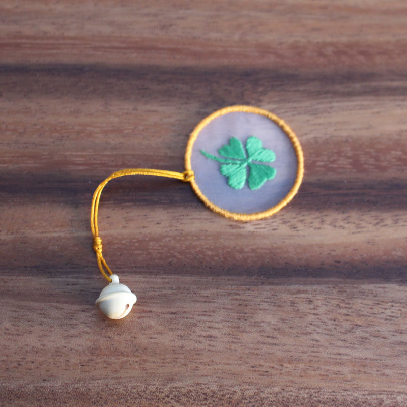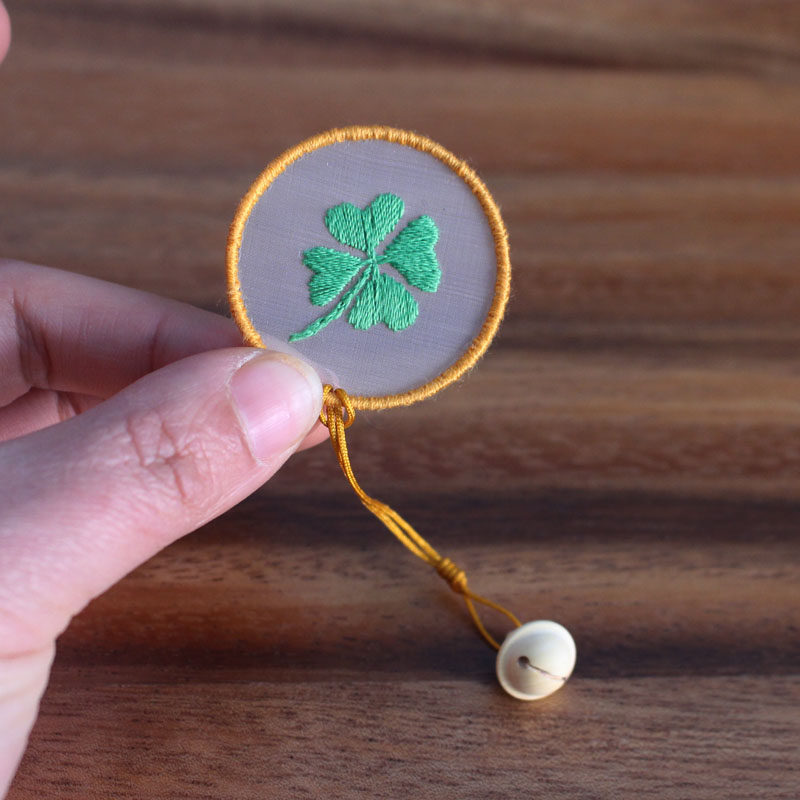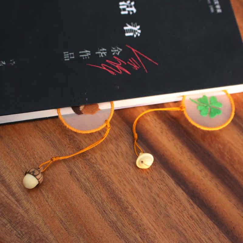 {Finished Product} Hand Embroidered Bookmark Four Leaves Straw Gingko Leaves Bell Oak Bifacial Embroidered Creative Gift Hanging Accessories