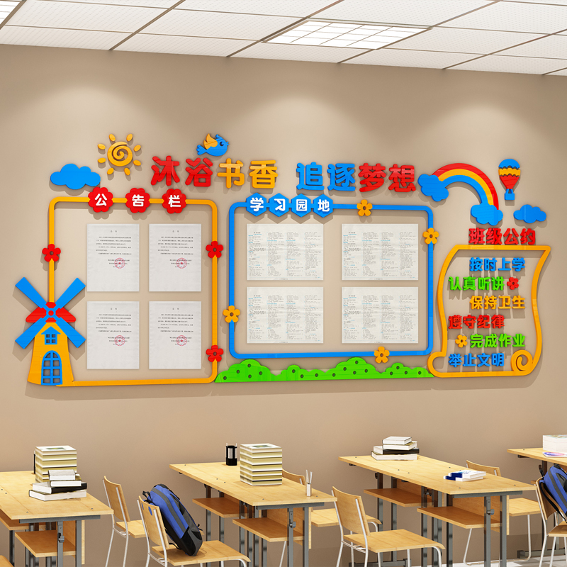Class Culture Wall Construction Decoration Classroom Placement Study Corner Display Wall Stickup Works Bulletin Board Wind Pick Elementary School-Taobao