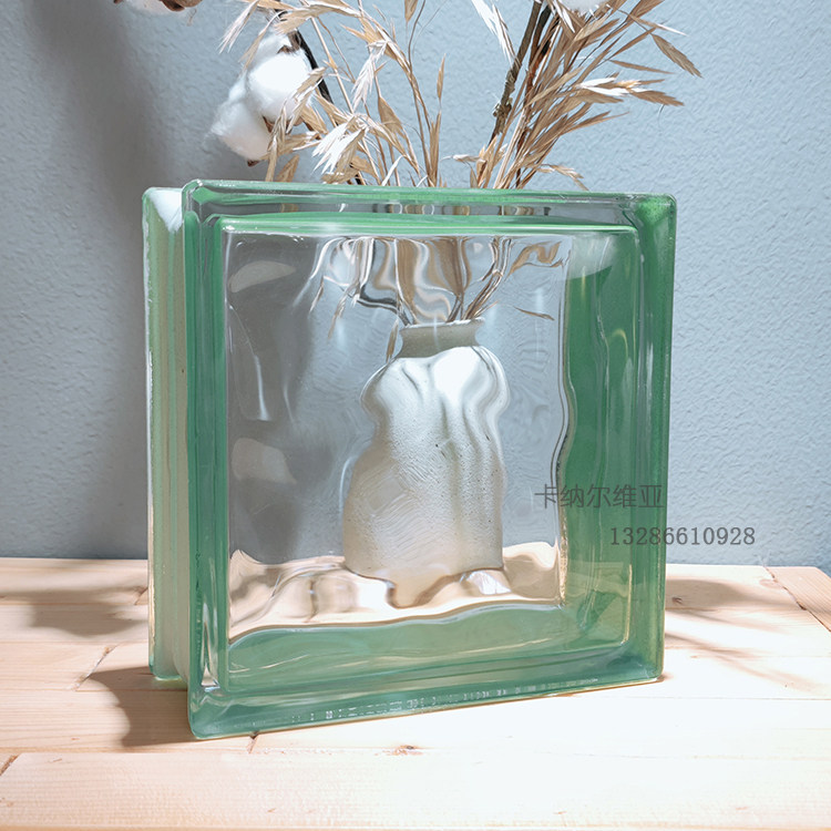 Imported edge color green cloud pattern translucent translucent square hollow glass brick powder room bedroom partition wall