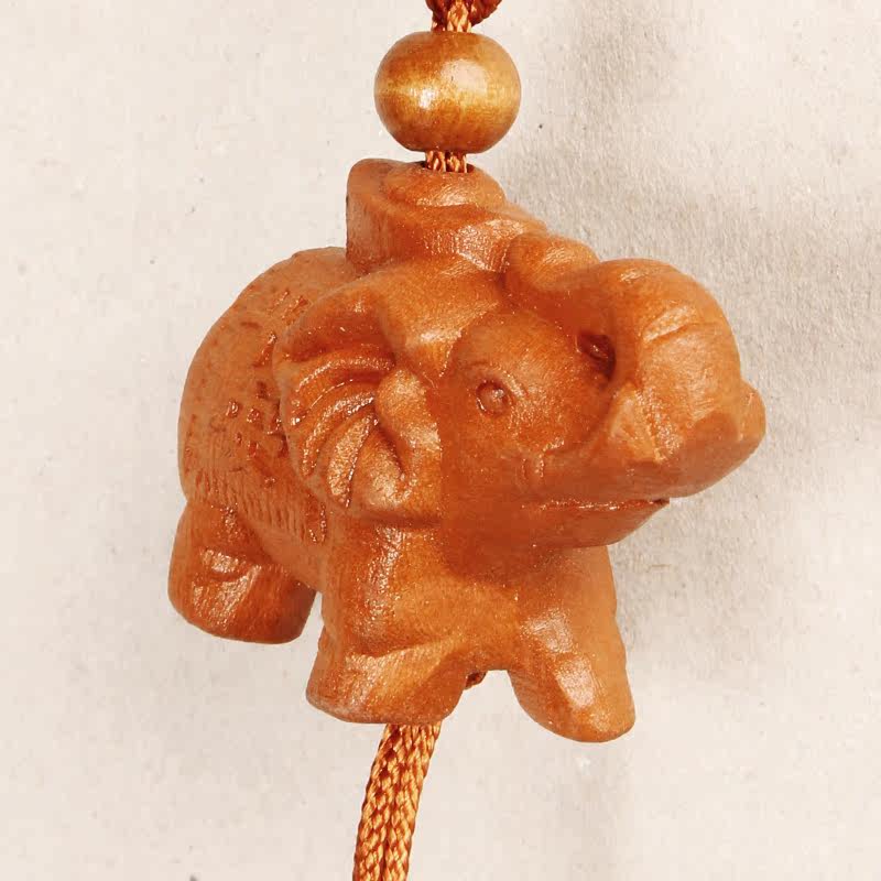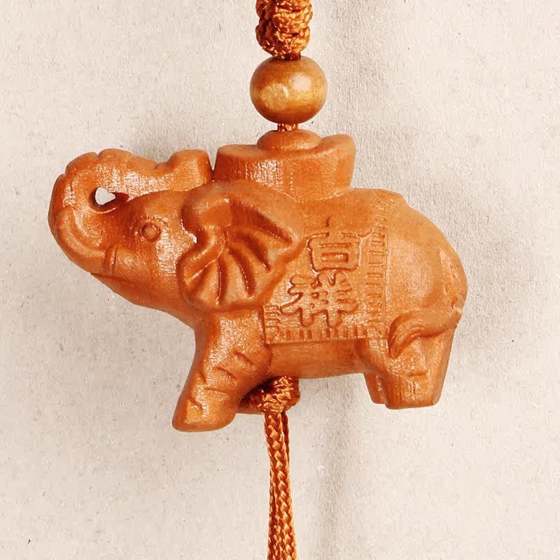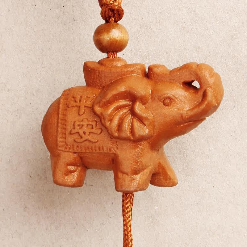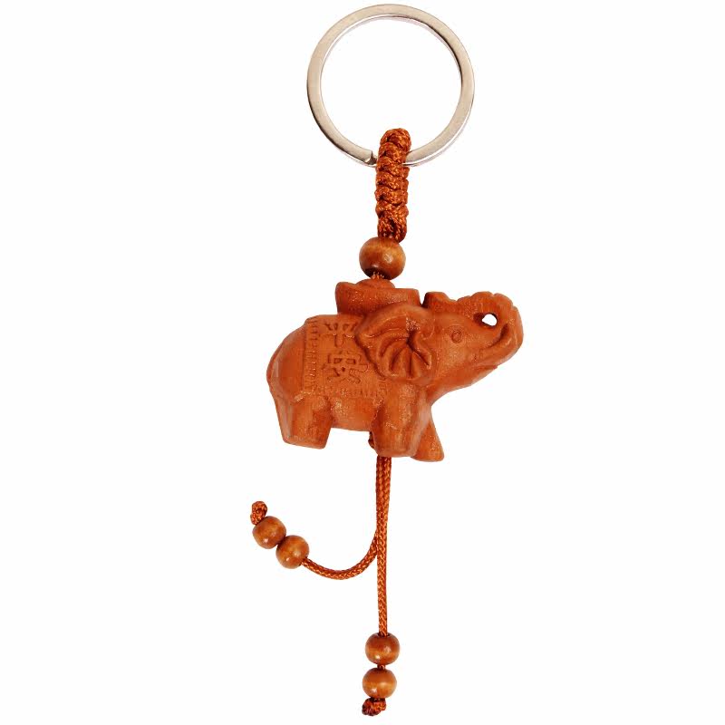 Keychain pendant Peach wood carving elephant Text safe and auspicious Car key trinkets Playing pieces Creative