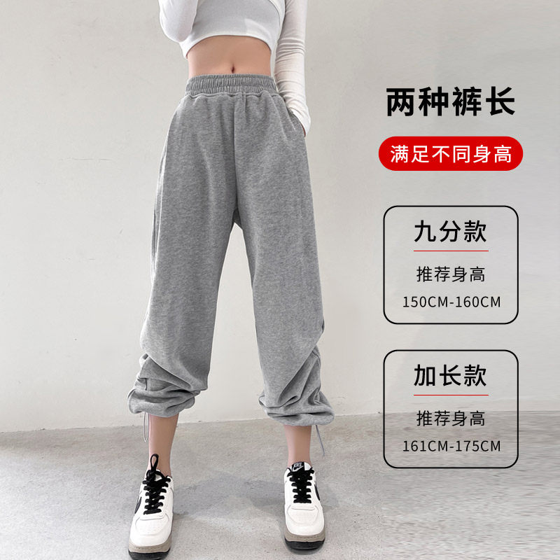 Sports Pants Woman Loose Bunches Spring New Broadlegged Pants High Waist Straight Drum Slim 100 Lap Casual Pants Outside Wearing Pants