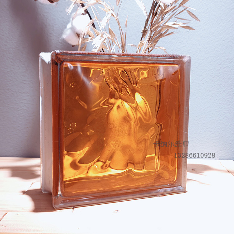 Import Inner Color Orange Clouds Fog Tattox Translucent Square Hollow Glass Brick Make-up Room Bedroom Partition Wall