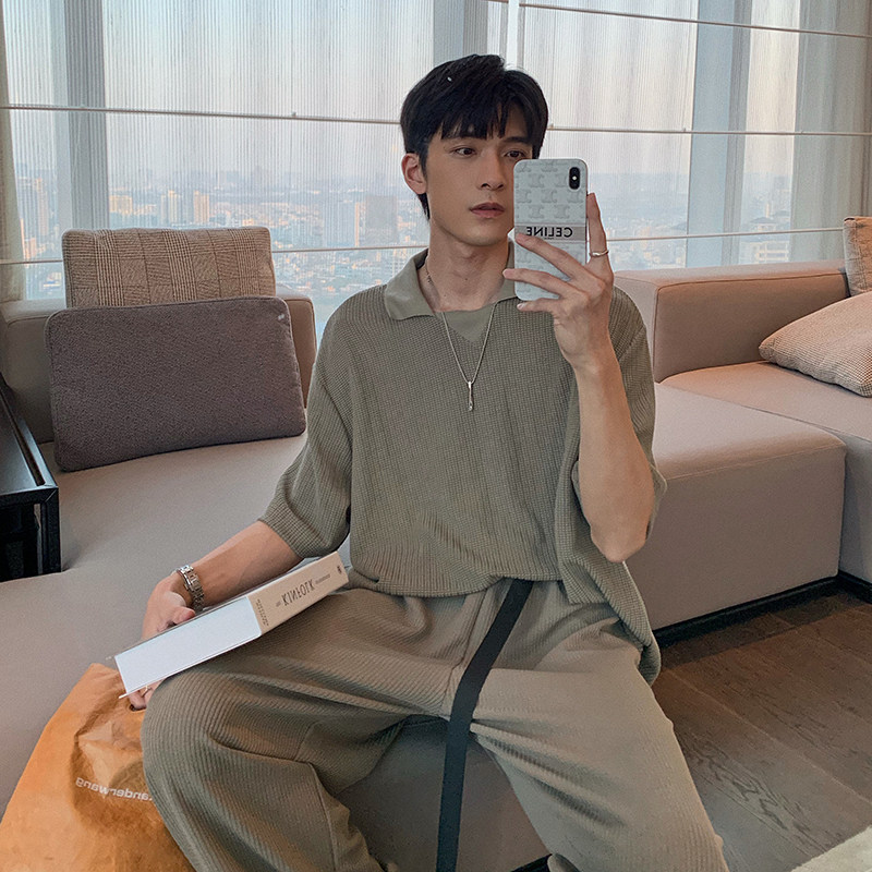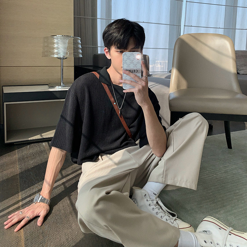 Hualun summer led non-perm polo shirt men short sleeves loose simple versatile literary small fresh lapel T-shirt