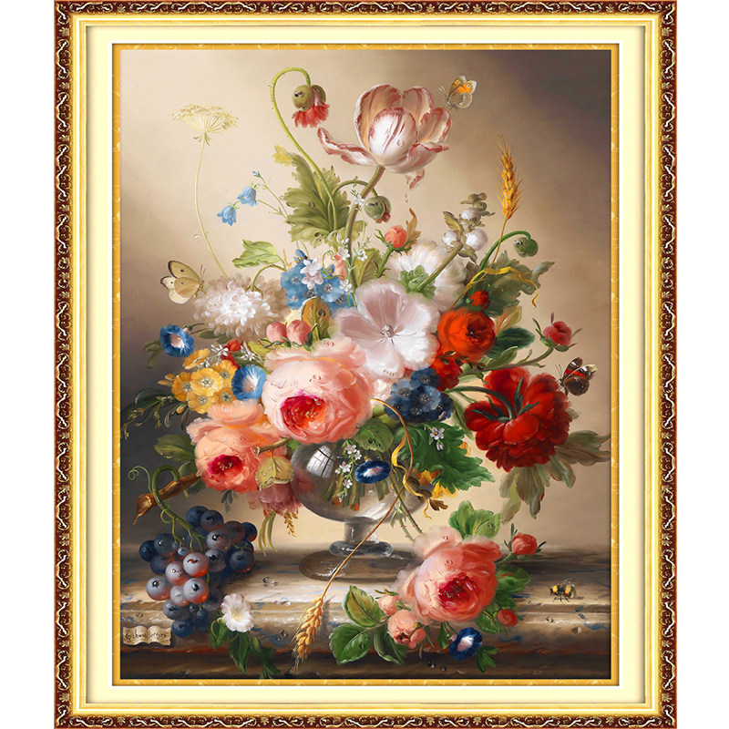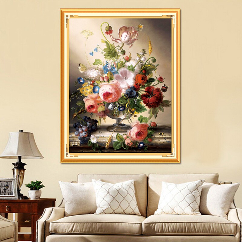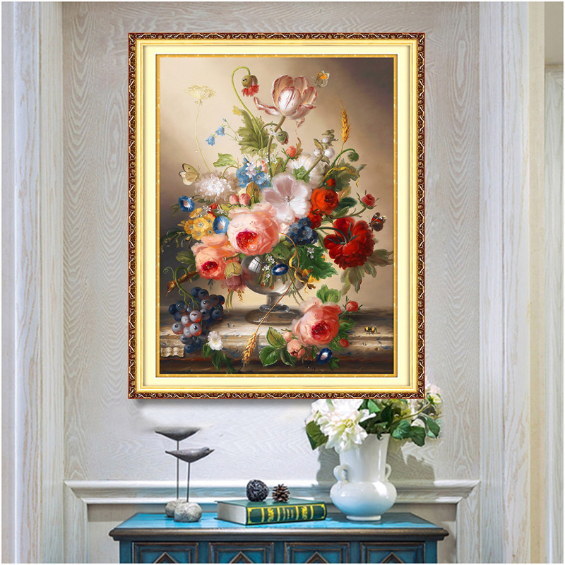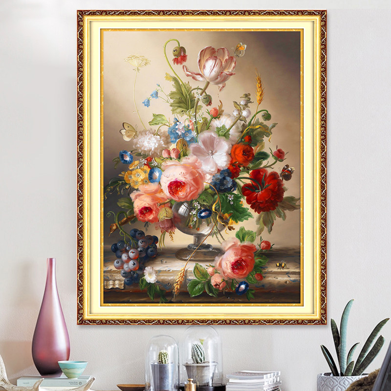 2021 New Silk Thread Embroidery Cross Stitch Wine Glass Rose Vase Living Room Bedroom Dining Room Small Simple Modern Flowers