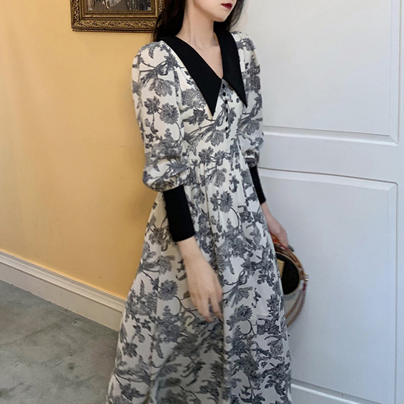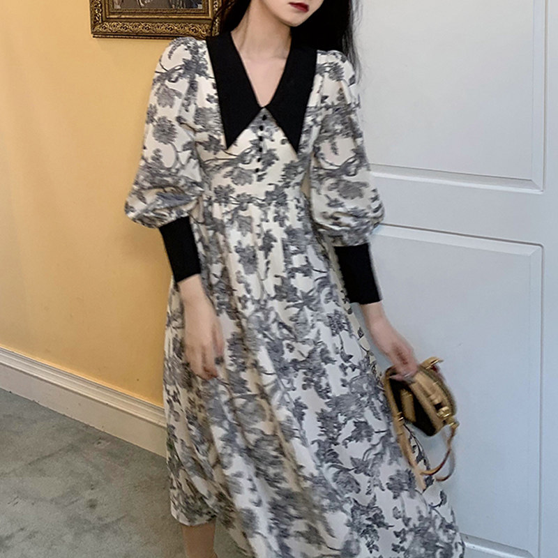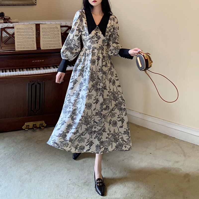 2022 Early autumn loaded with new style retro light cooked wind bubbles with sleeves shoulder turning and printed foreign clothes cashew slim fit