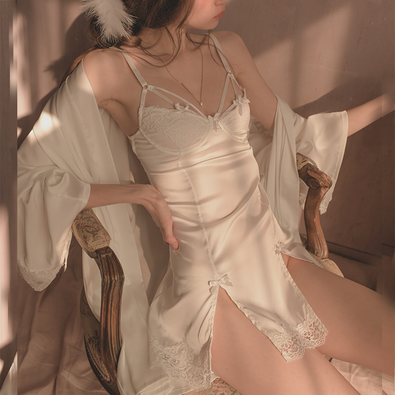 Sexy pajamas Spring and summer 2021 new hollow steel lace seduces beautiful ice wire private room to hang sleeping skirt