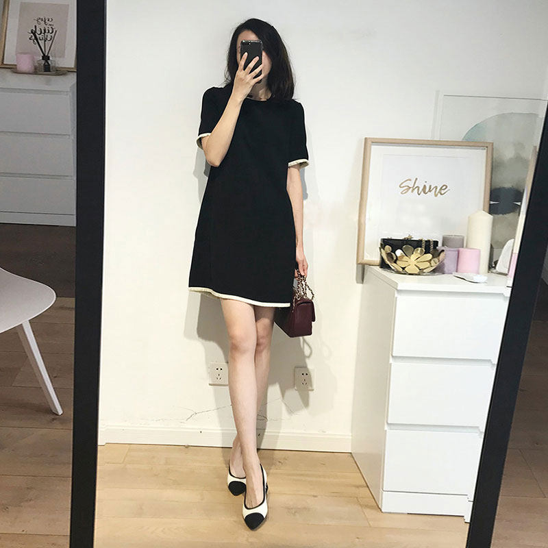 Large size women's clothing 2021 summer new fat mm dress age reduction cover belly show thin temperament heart machine Hepburn small black dress