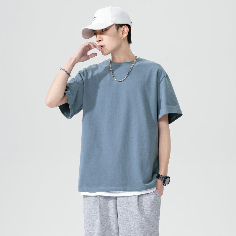 Short Sleeve T-shirt Men's Undershirt White Xinjiang Pure Cotton Summer 2021 New Ins Tide Cards 100 Lap Half Sleeve Loose