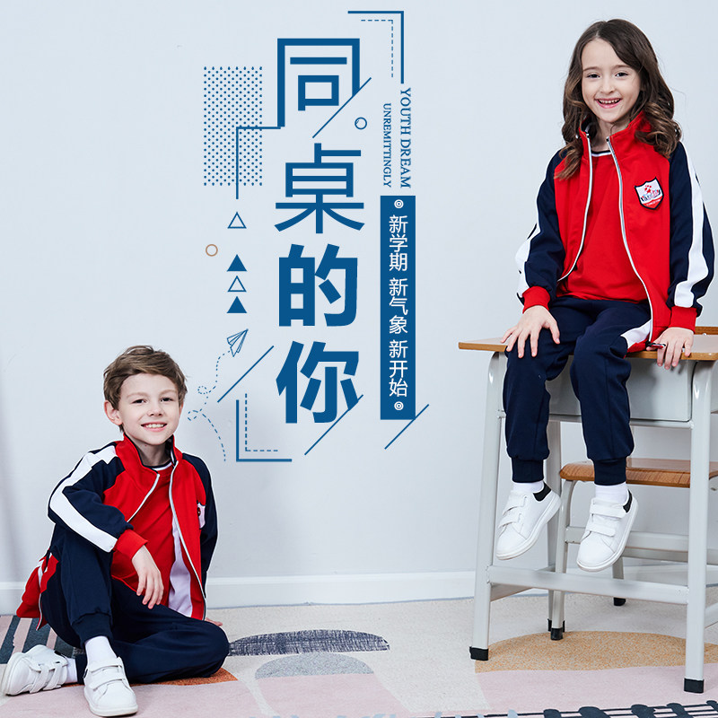 School uniform suit primary school students spring and autumn clothes three-piece set single top pants second grade class uniform kindergarten uniform red