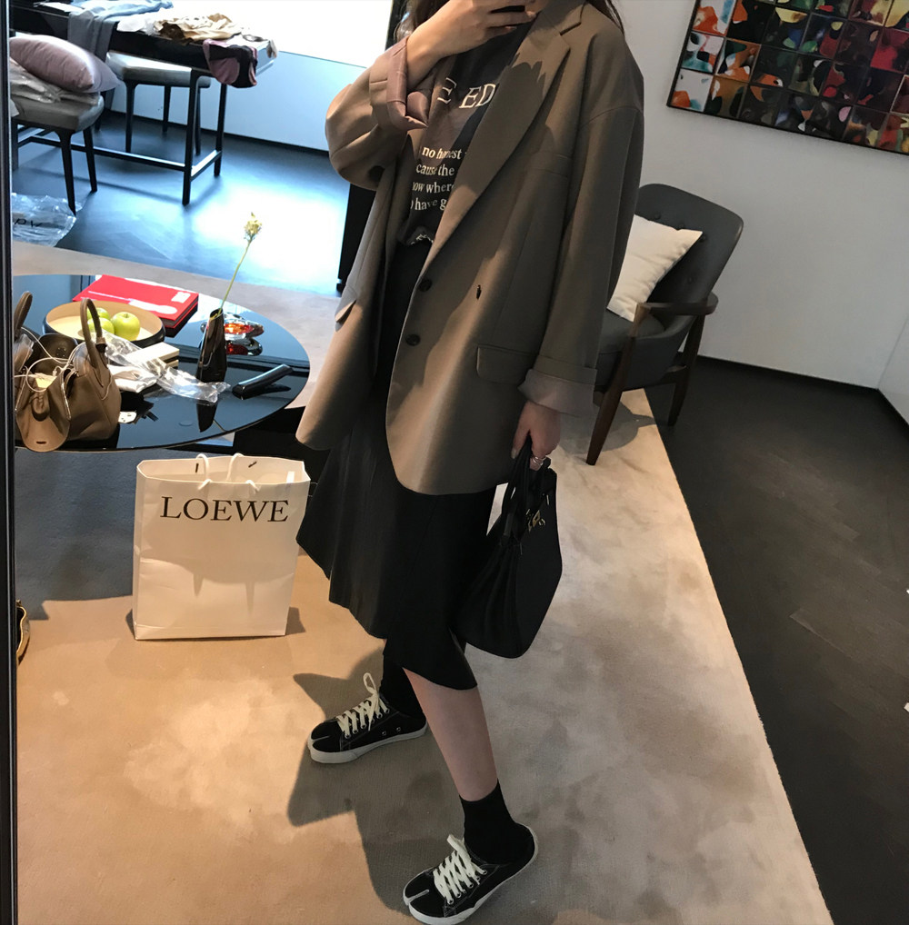 Big size 2021 early autumn new small blazer female fat mm Korean version loose thin suit 200 pounds of Foreign pie