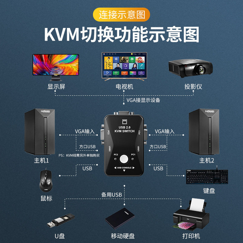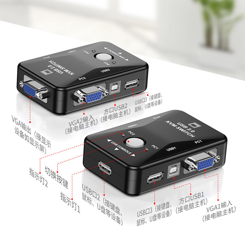 VGA switch 2-port KVM computer host display one drag two in one out Mouse keyboard USB sharing distribution