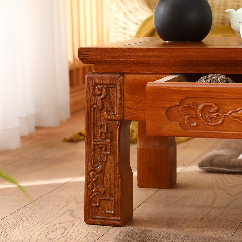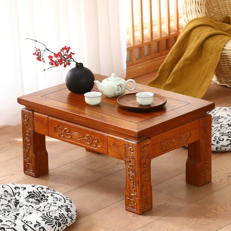 Solid wood floating window small tea table table day style tatami old elm wood tea table short table vintage wind can customize the kang table-Taobao