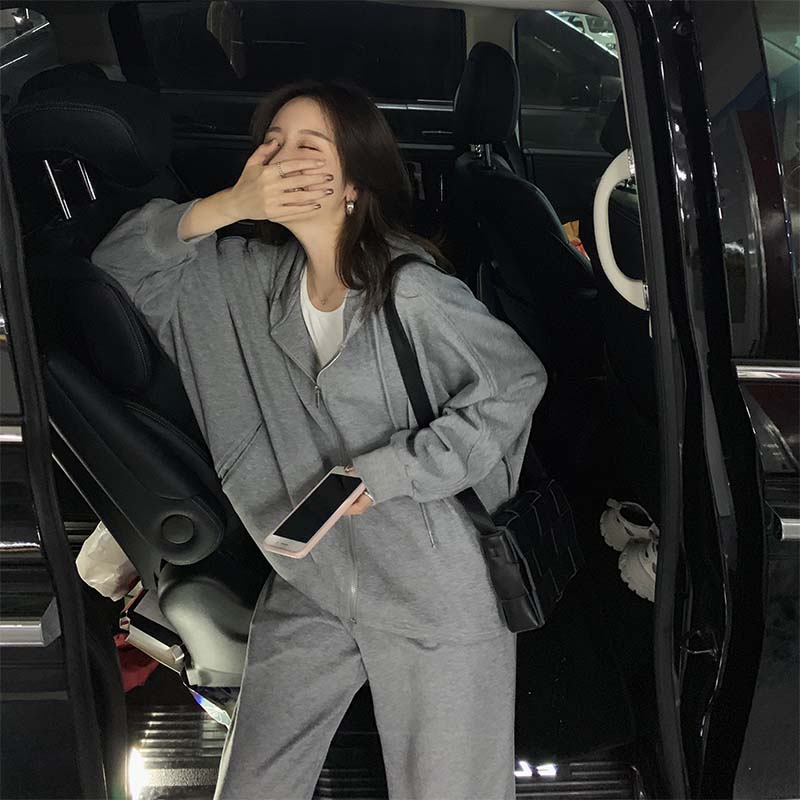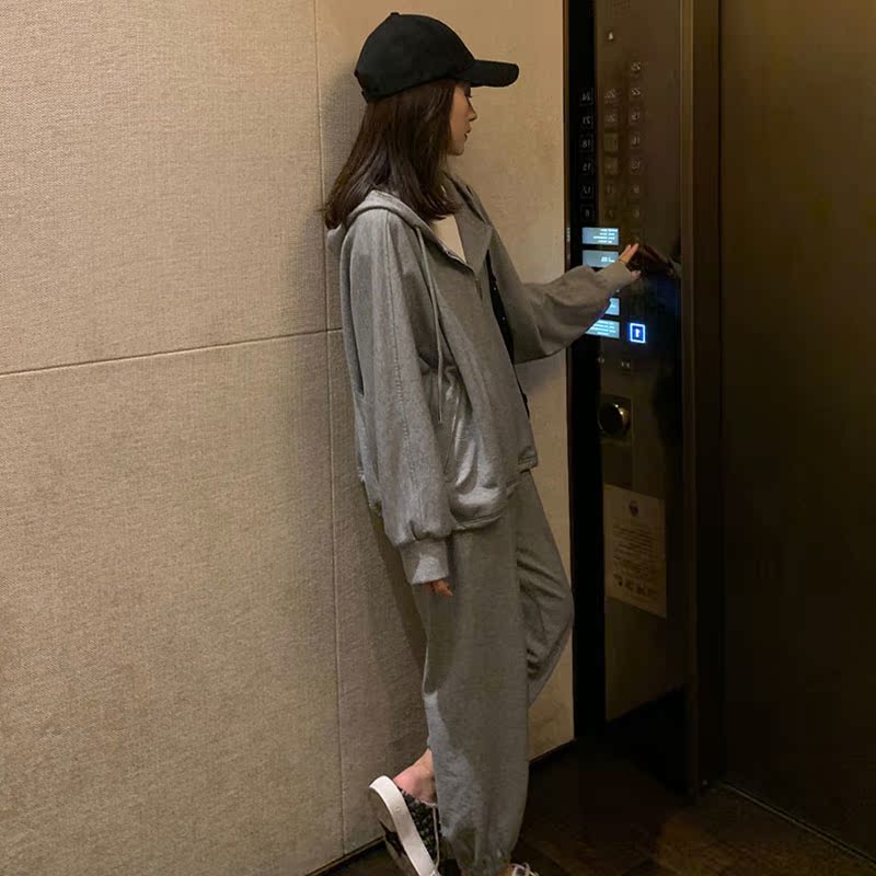Casual fashion suit spring 2021 new style small girl with high salt fried street gray two-piece Western style