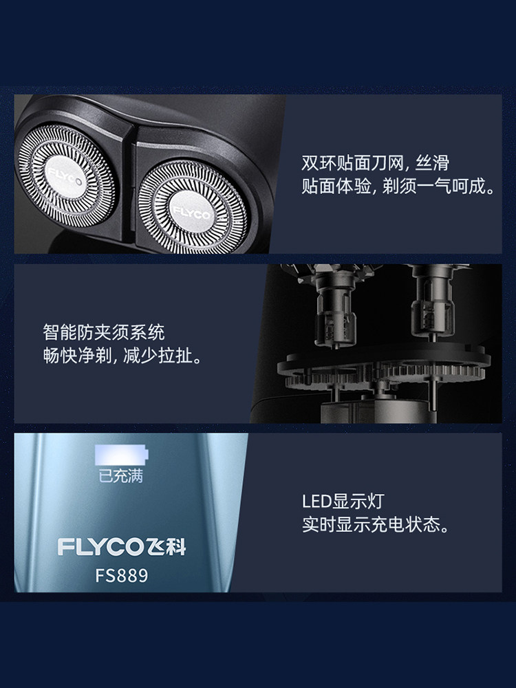 Feike Electric Razor FS888 889 Men's Whole Body Wash Double Blade Plug and Play USB Fast Charging
