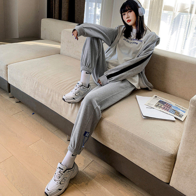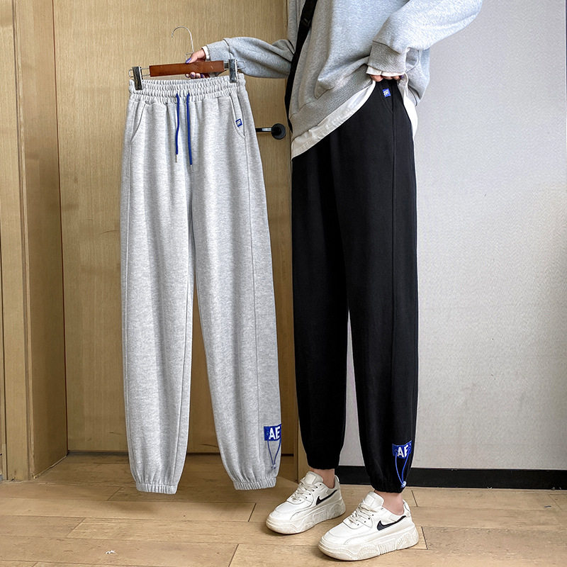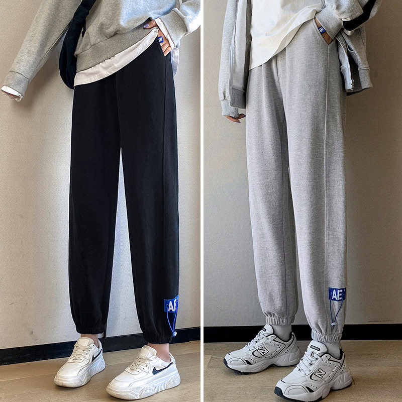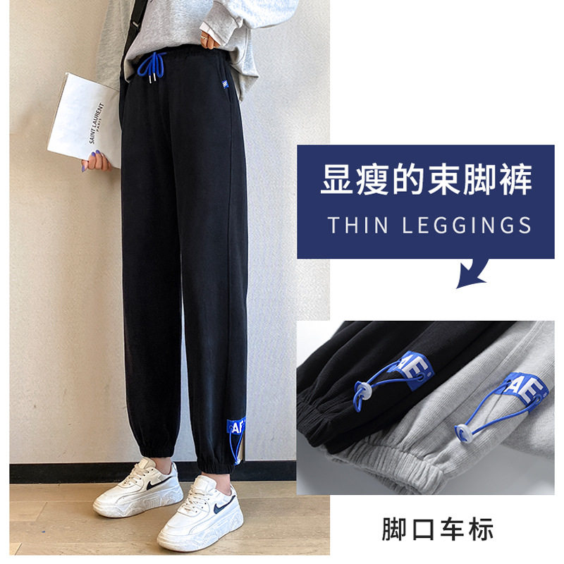 2021 new spring and autumn sports pants women's summer thin section loose slim drawstring nine-point pants casual thick cotton pants student pants