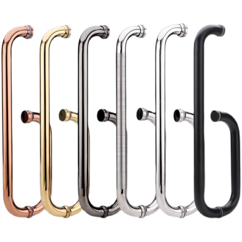 Bathroom powder room puller hotel shower room sliding door armrest 304 stainless steel European type L-type shiny black titanium alloy