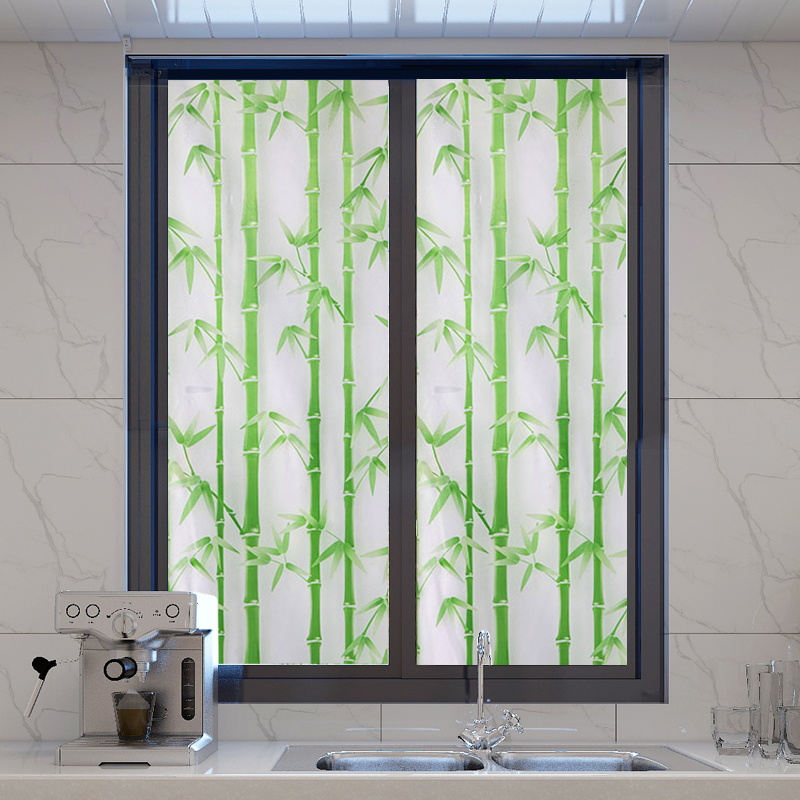 Electrostatic glass tape Chinese 3D bamboo bathroom anti - walking light transparent opaque grinded window stickers