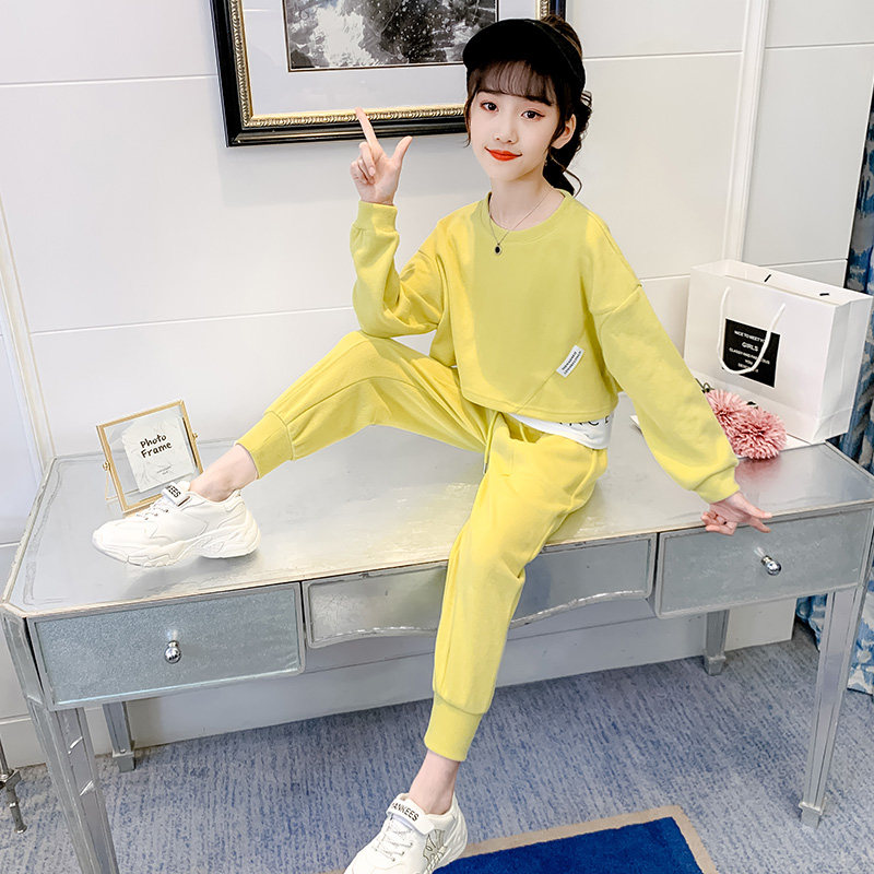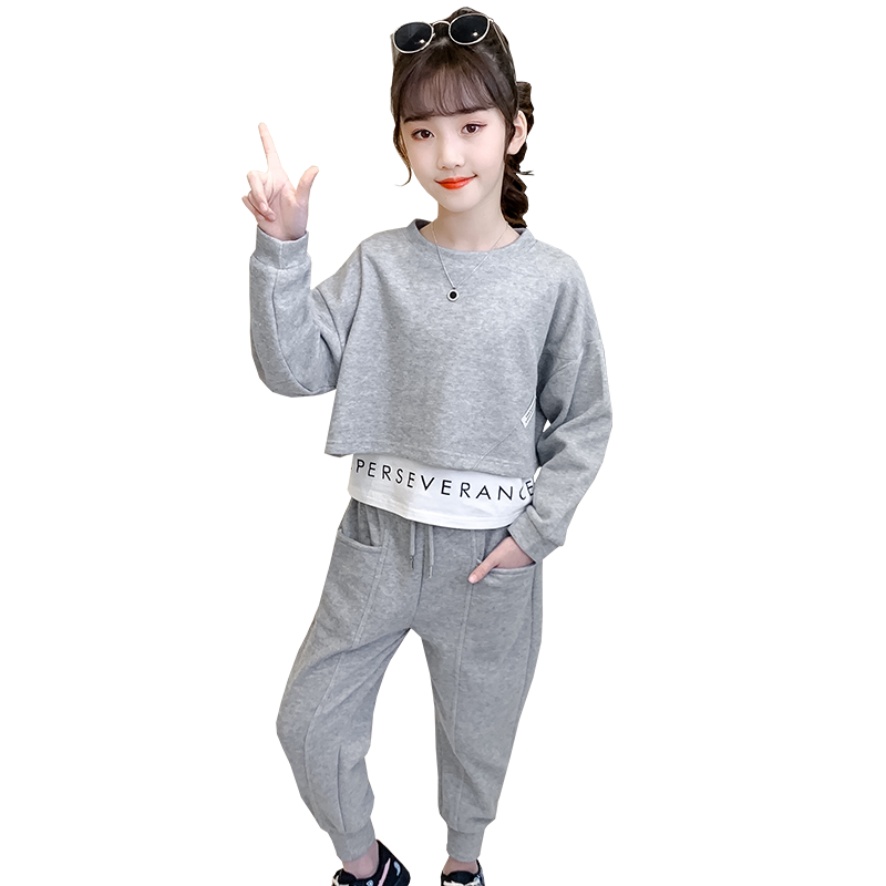 Girls spring suit 2021 new big child 5 sports 6 foreign school 7 net red 8-year-old spring and autumn two-piece cotton