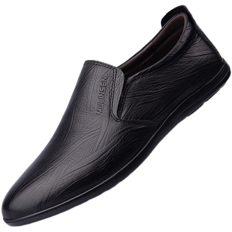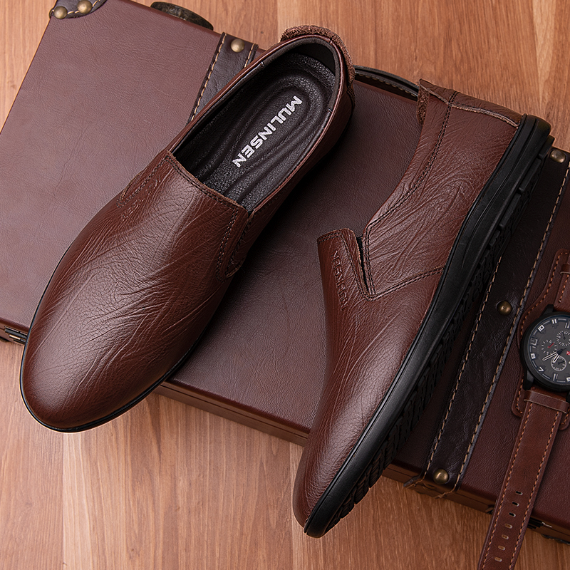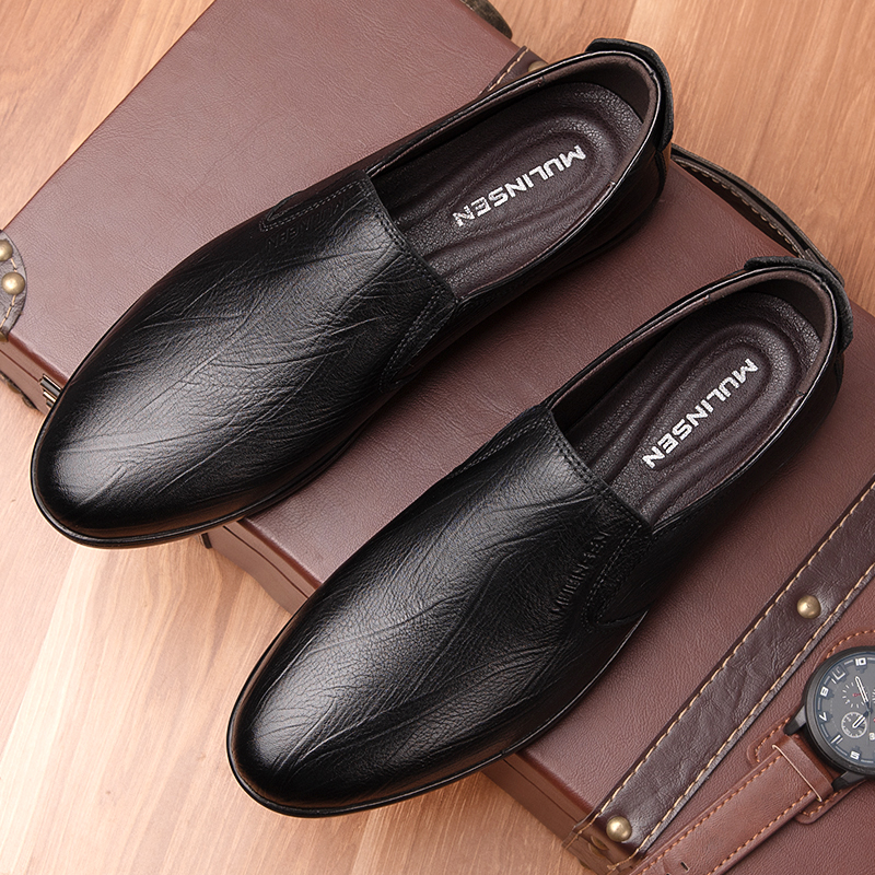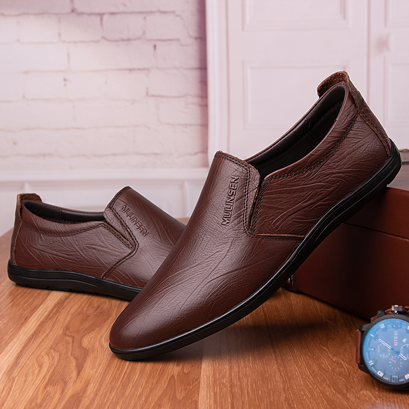 Mulinsen men's shoes spring and autumn 2022 new casual leather shoes men's leather soft leather soft bottom slip on lazy peas shoes