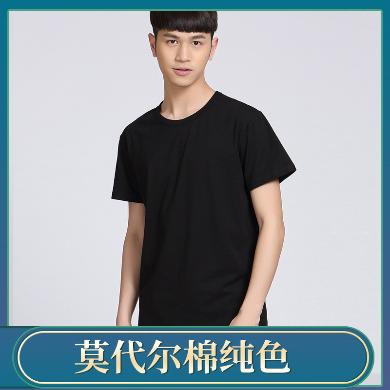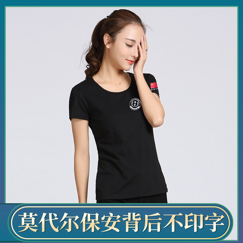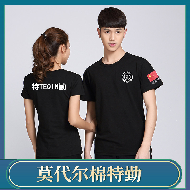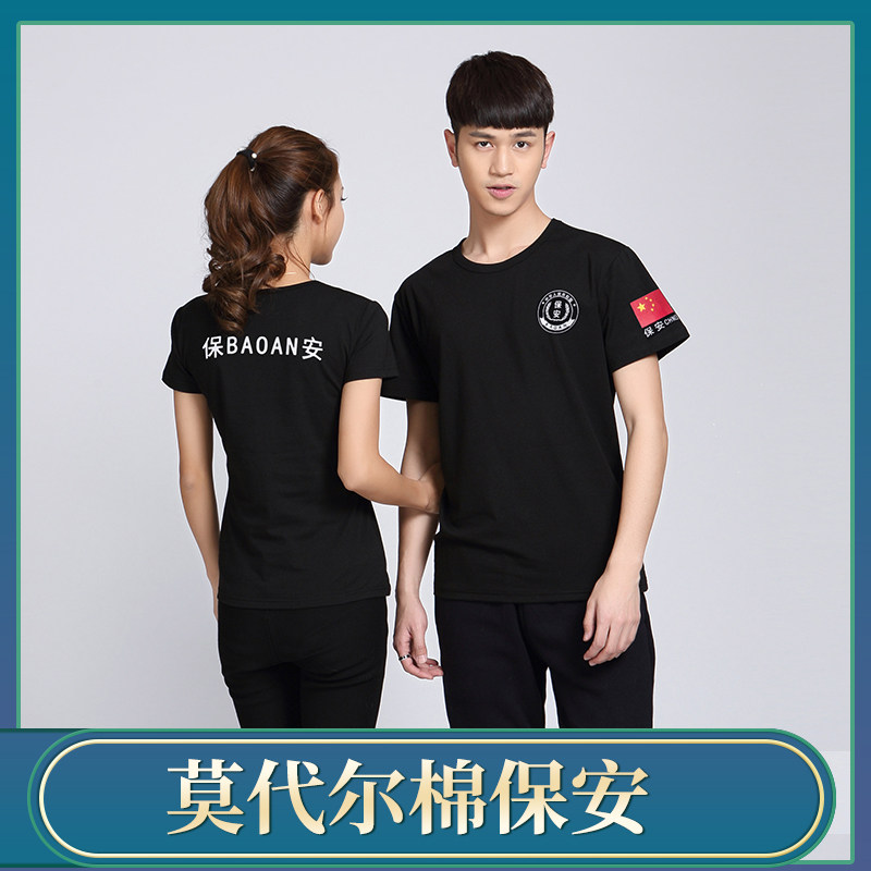 Summer short-sleeved fitness suit training suit security duty T-shirt pure cotton black men and women training breathable quick-drying round neck